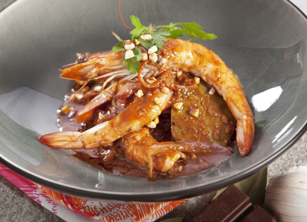 LANGOSTINOS CON SALSA AL OPORTO Y CHOCOLATE