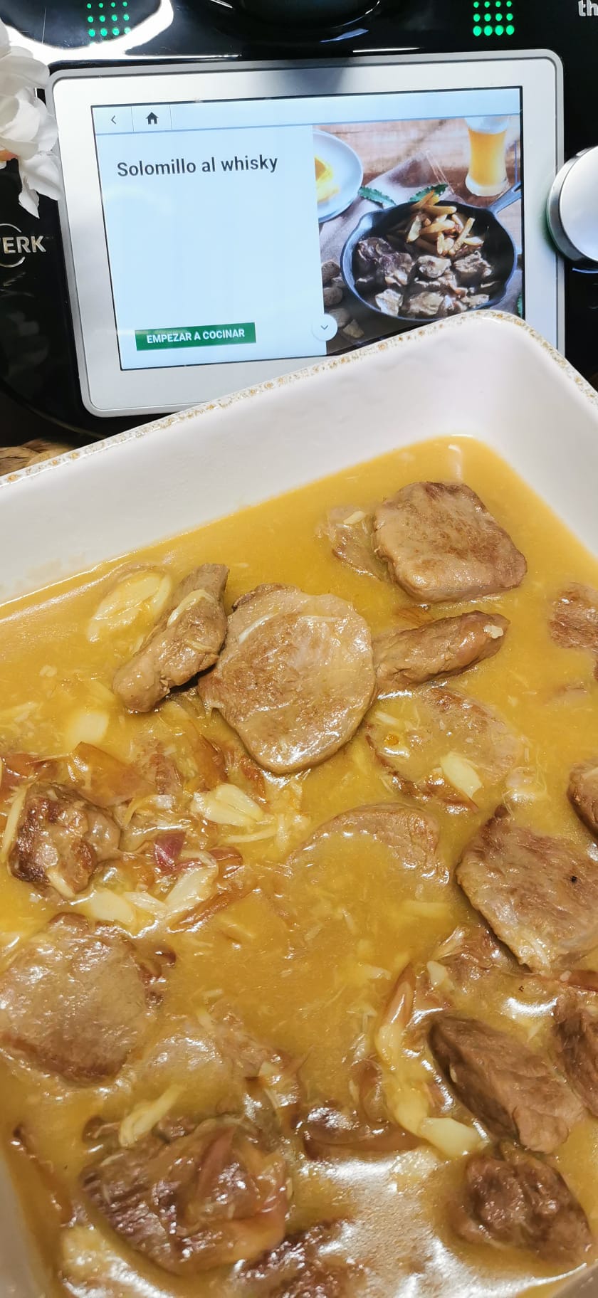 Buenas tardes, hoy os traigo una receta que en casa gusta mucho y que es muy fácil de preparar con nuestro Thermomix, SOLOMILLO AL WHISKY.