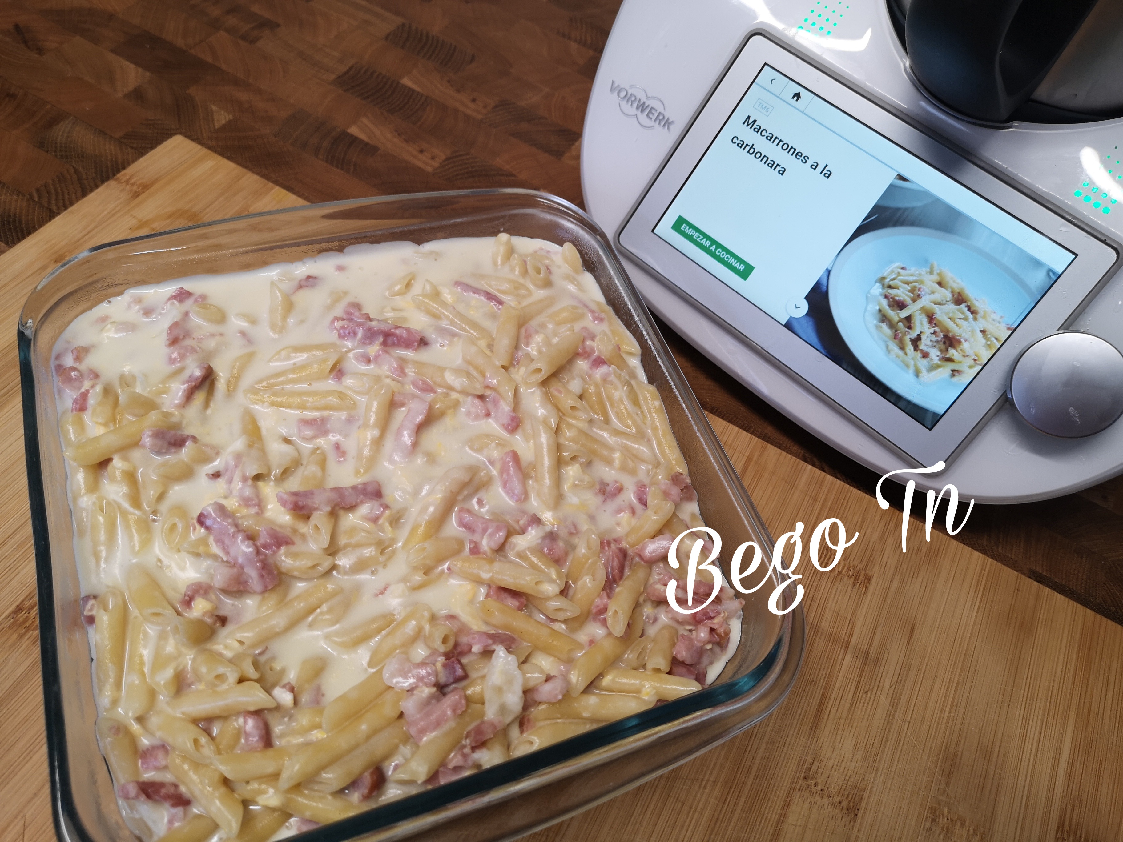 Macarrones a la carbonara en Thermomix®