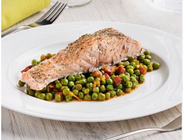 Lomos de pescado y guisantes con jamón al pimentón en Thermomix®