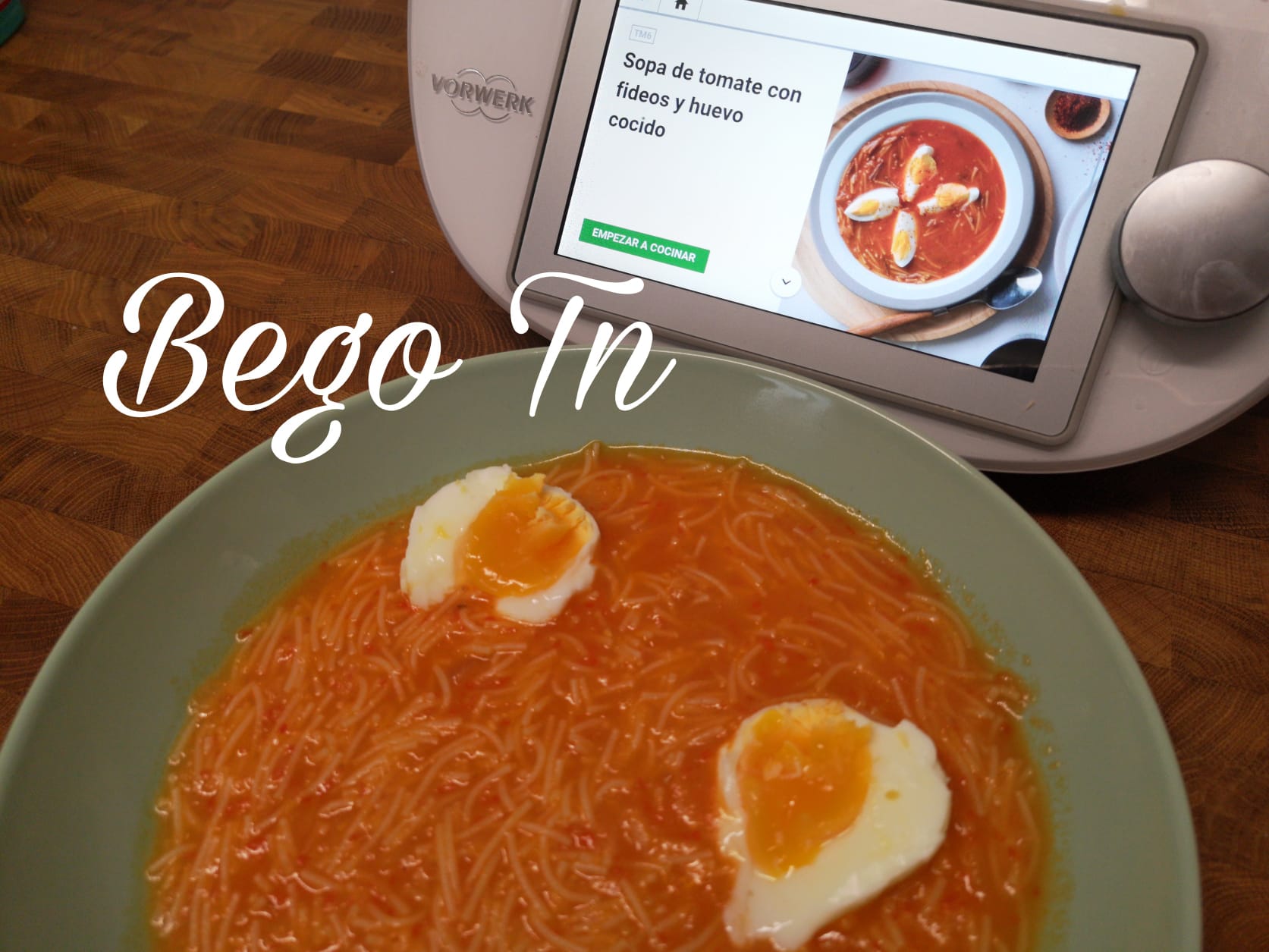 Sopa de tomate con fideos y huevo cocido en Thermomix®