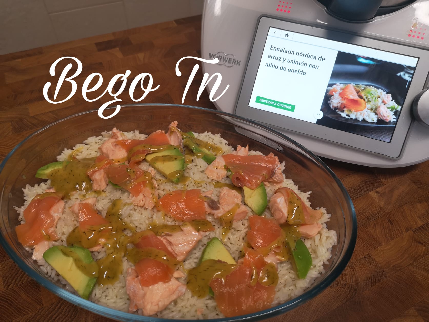 Ensalada nórdica de arroz y salmón con aliño de eneldo en Thermomix®