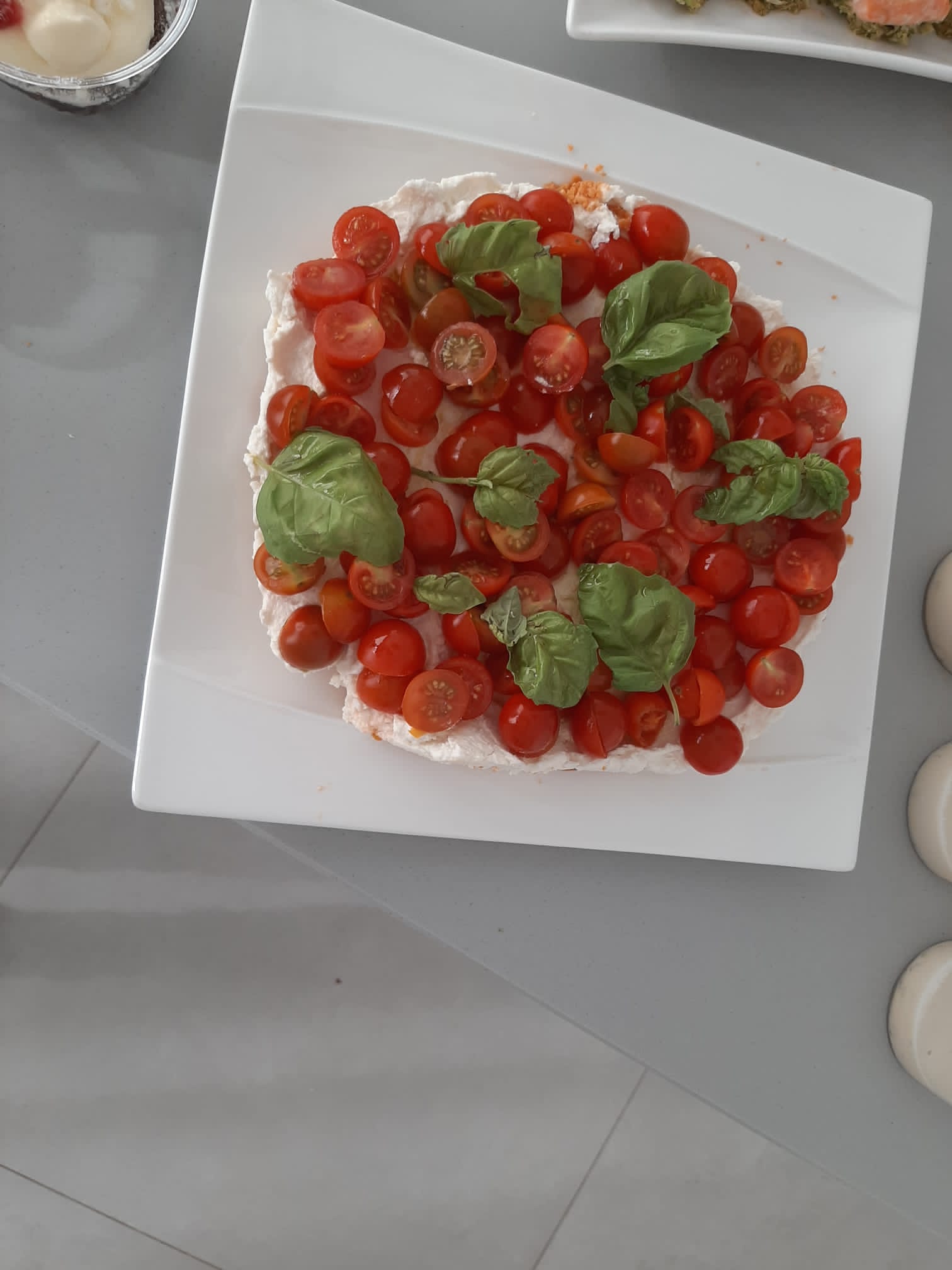 TARTA DE TRES QUESOS Y TOMATES CHERRYS