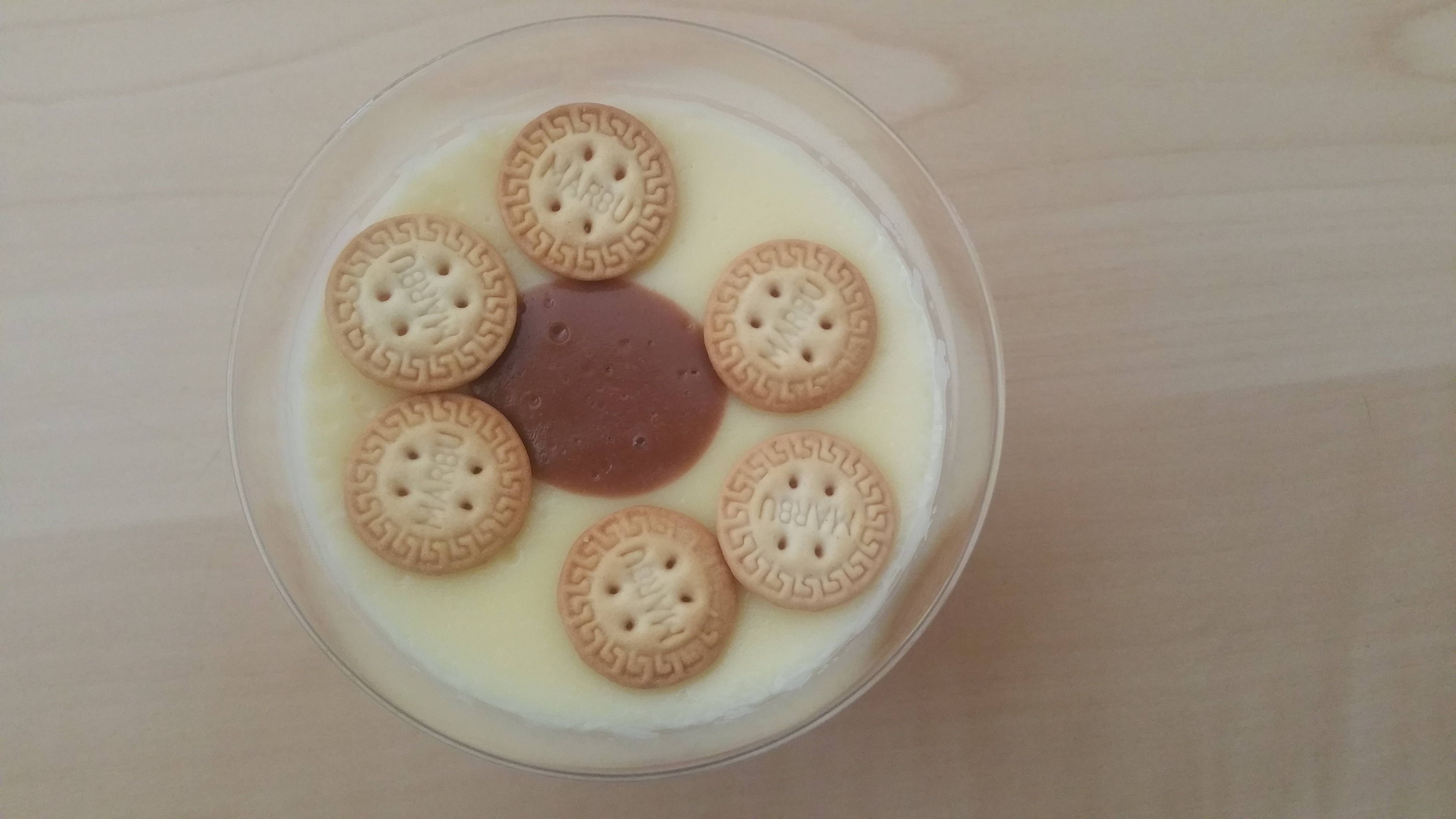 - Vierta las natillas en vasos individuales, yo puse en la base unas galletas. Dejar enfriar y espolvorear canela, virutas de chocolate o lo que se le ocurra a cada uno.