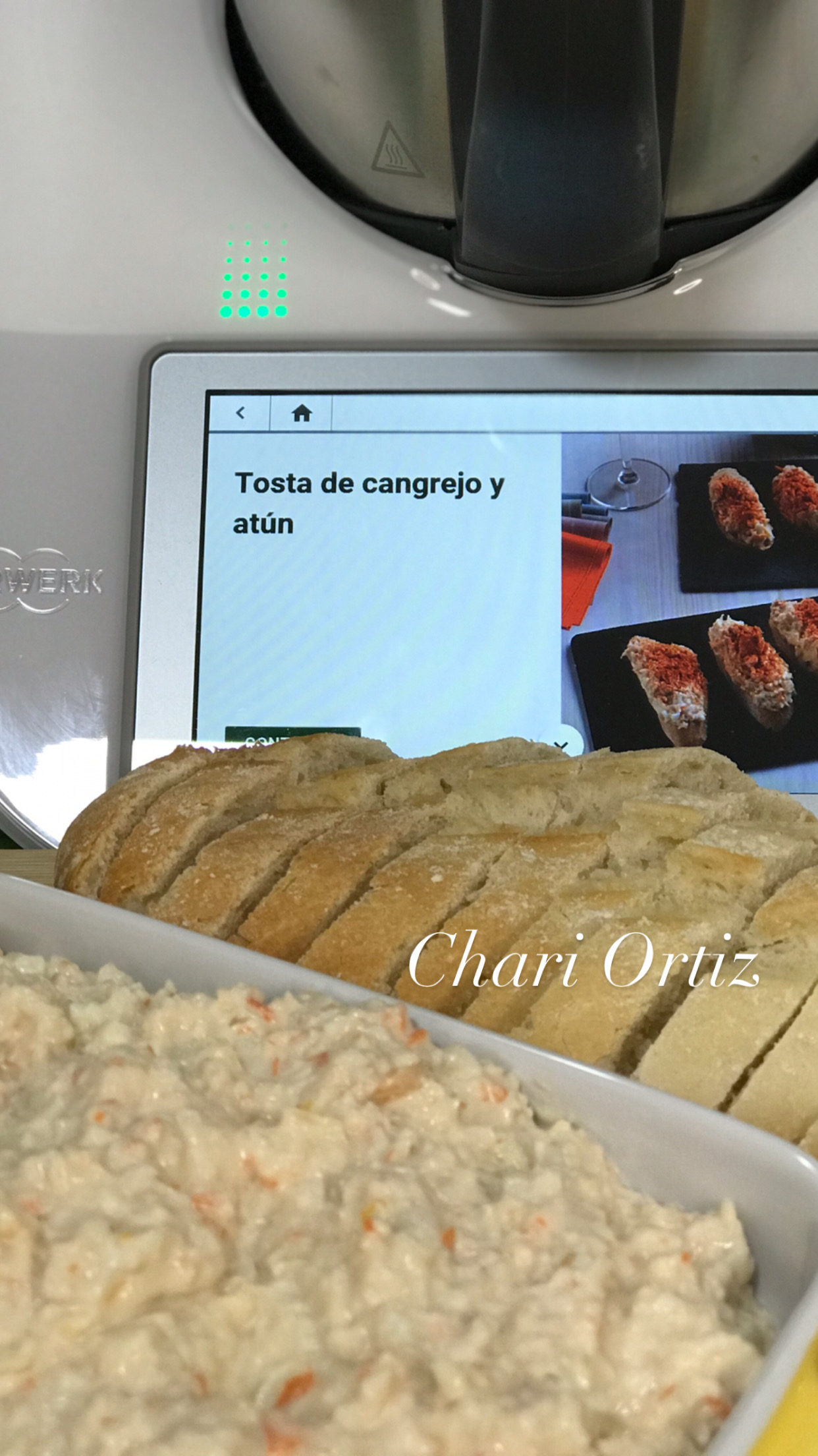 Este aperitivo o tapa como le quieras llamar es una muy buena opción para poder hacer rápido y buenísimo en un momento con Thermomix. Tostas de cangrejo y atún.