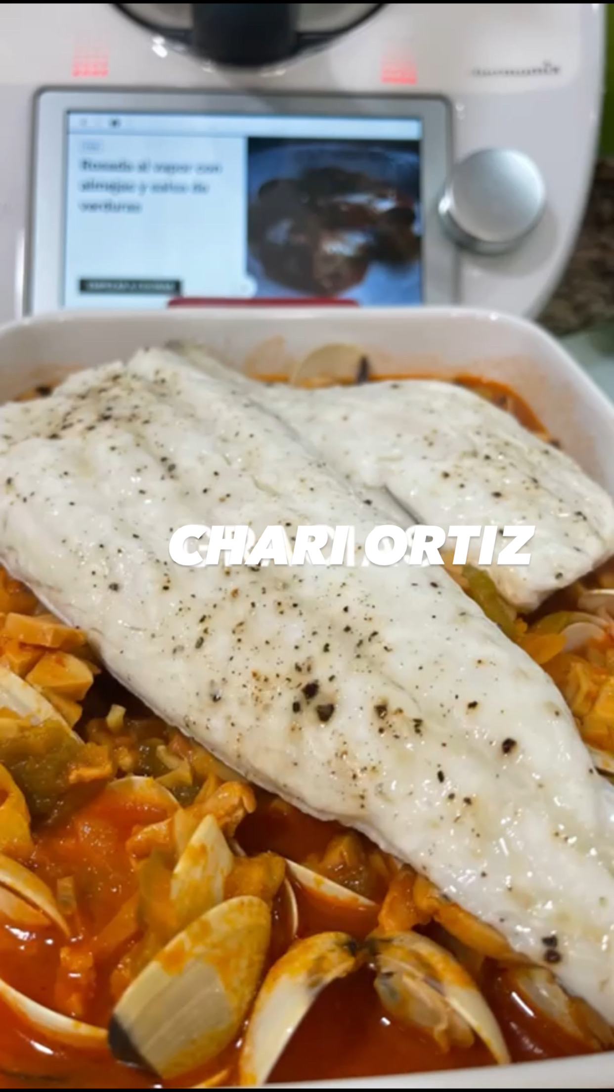 Rosada al vapor con almejas y salsa de verduras este plato está espectacular para cualquier cena o almuerzo ligerito y tiene una salsa de verduras con champiñones que está muy buena .