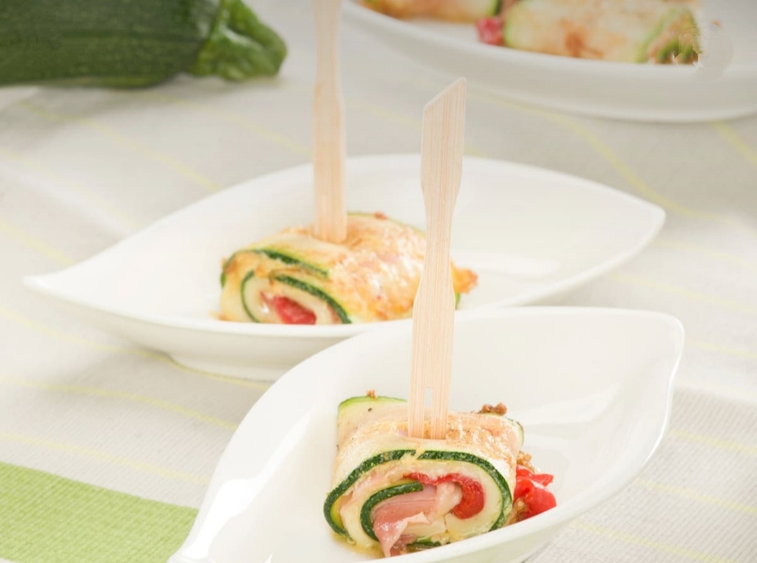 ROLLITOS DE CALABACÁN RELLENOS DE JAMÓN Y QUESO