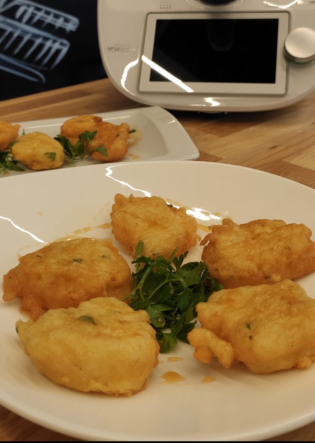 TORTILLITAS DE BACALAO CON MIEL DE CAÑA