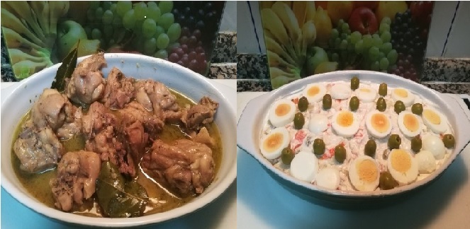 POLLO EN SALSA Y ENSALADILLA RUSA DOS PLATOS EN UNA ACCIÓN