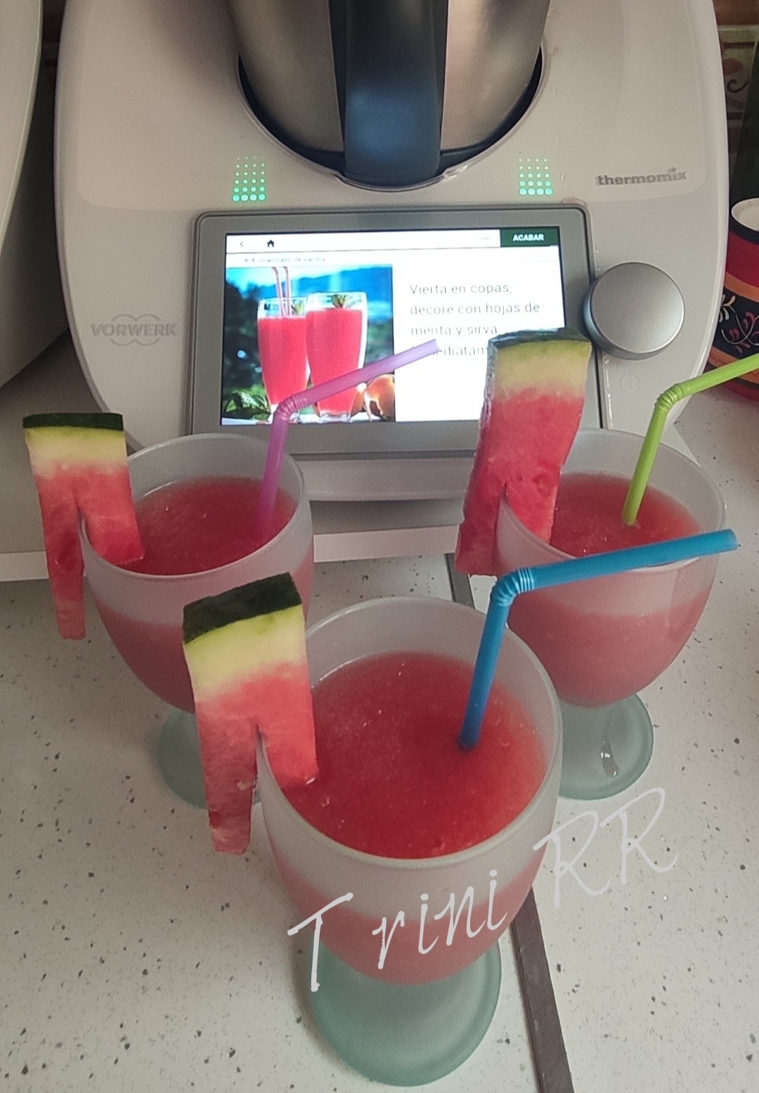En cookidoo podéis encontrar muchos, pero yo os voy a enseñar a hacer el de sandía, está delicioso y puedes aprovechar la sandía cuando ya está mas pocha para realizarlo.