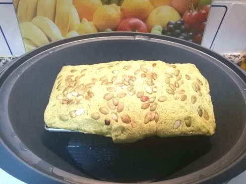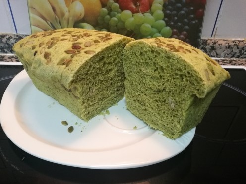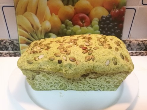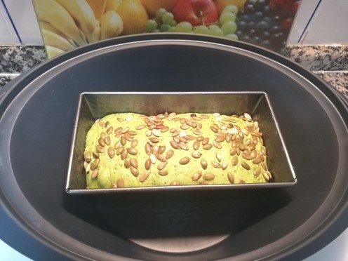 PAN DE MOLDE DE ESPINACAS CON PIPAS DE CALABAZA AL VAPOR
