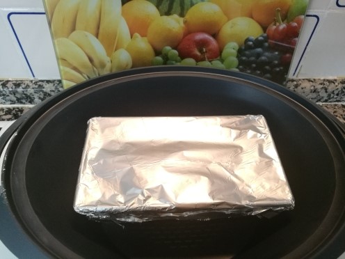 4. Vierta 600 gramos de agua en el vaso, sitúe el Varoma en su posición y programe 45 min/Varoma/Vel. 1, Deje templar, desmolde sobre una rejilla para que se enfríe completamente (aproximadamente 1 hora) y utilice a su conveniencia.
