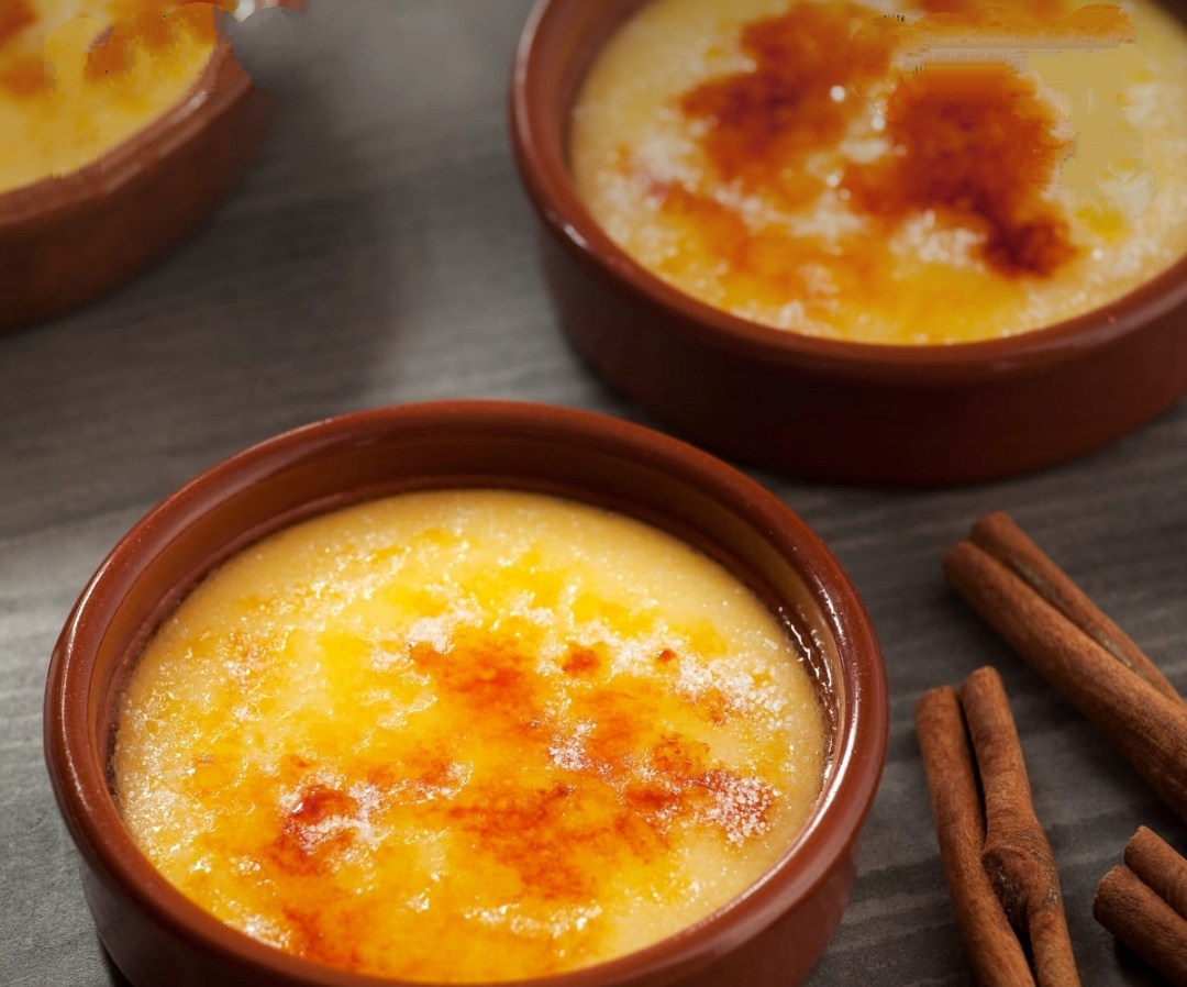 La crema catalana es un postre muy típico de la gastronomía catalana y consiste en una crema pastelera con base en yema de huevo que se suele cubrir con una capa de azúcar caramelizado en su superficie para aportar un contraste crujiente.
