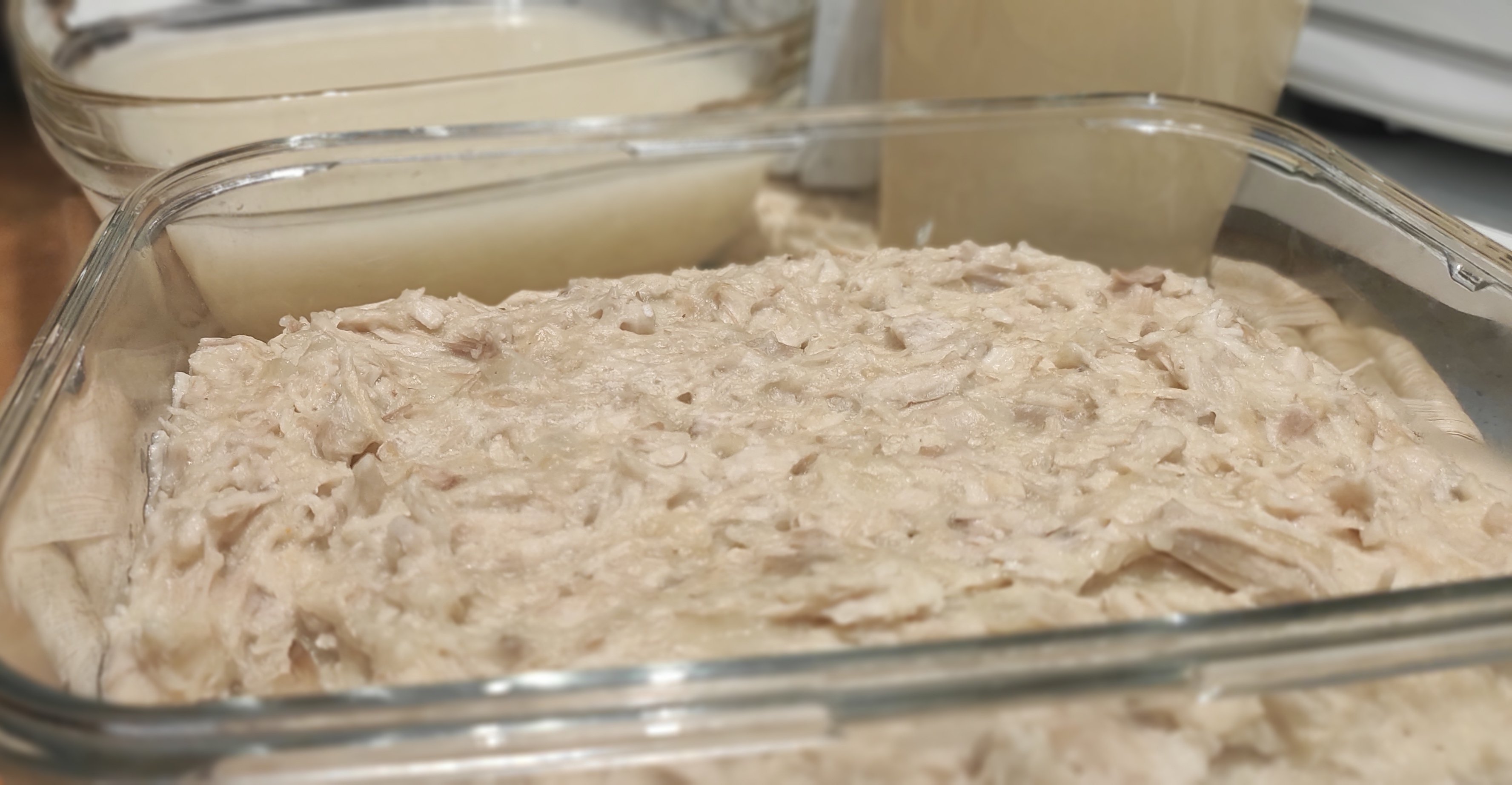 8. Con el pollo, yo he preparado una masa de croquetas buenísimas de pollo. Podemos encontrar la receta en cookidoo, os dejo el enlace por si queréis hacerla. En la receta indica echarle jamón, en mi caso no se lo he agregado.