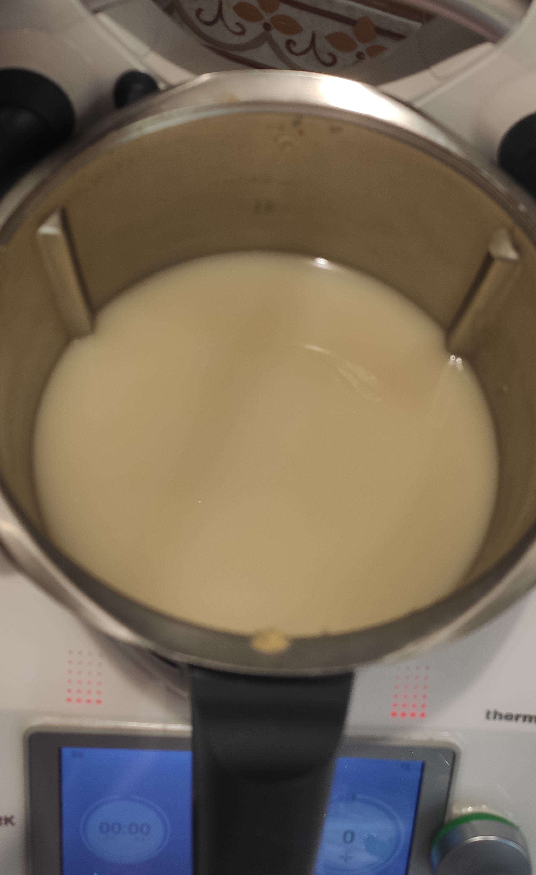 6. Pasado este tiempo, vemos que nuestro caldo ya está listo!!!, Echamos el caldo en una olla y volvemos a llenar el vaso de agua otra vez y lo programaremos otros 45 minutos, a temperatura varoma y velocidad 1. Volveremos a obtener otro vaso de caldo .
