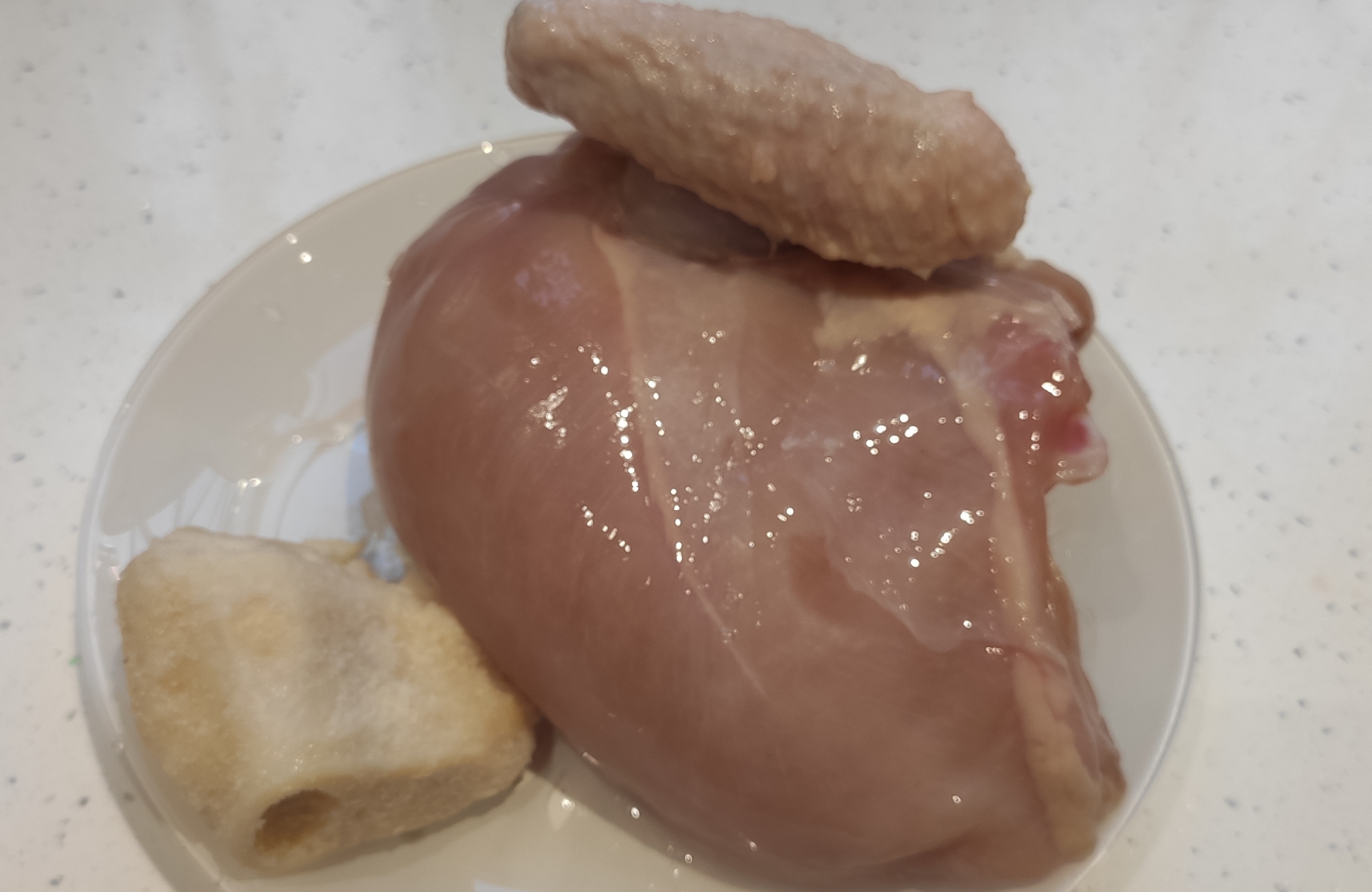 - Media pechuga de pollo con el hueso y el ala o una pata entera