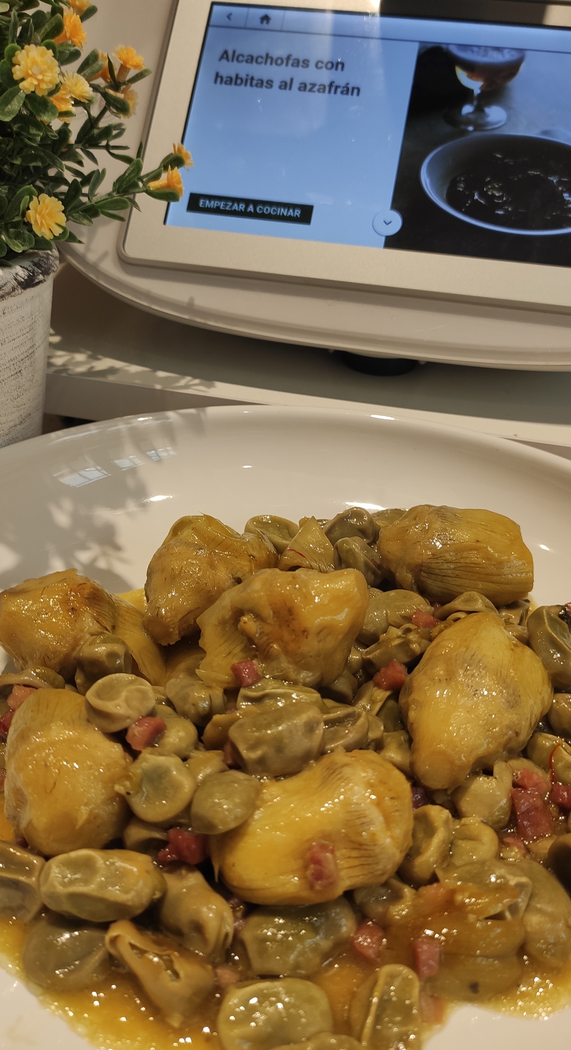 ALCACHOFAS CON HABITAS AL AZAFRÁN