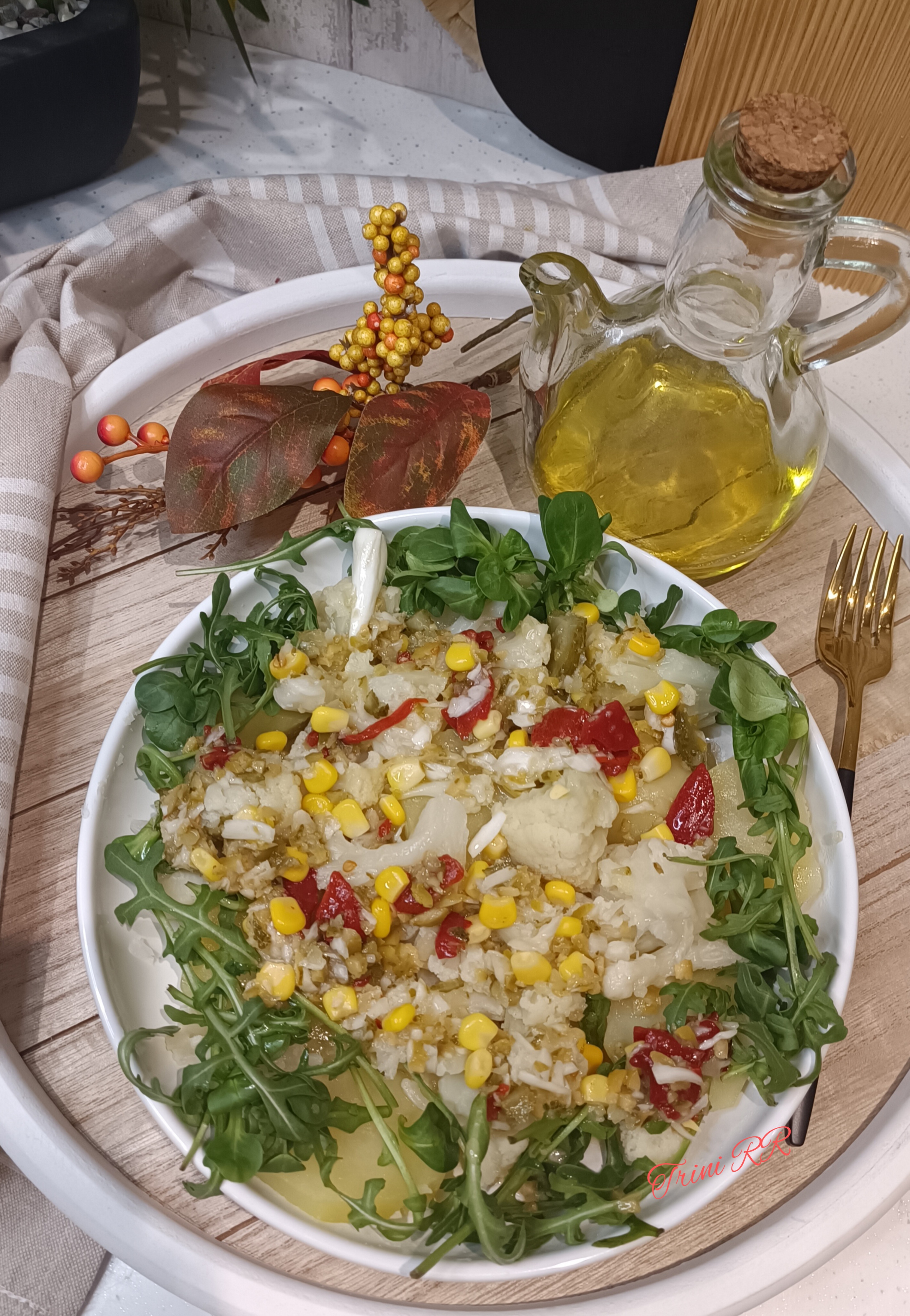 COLIFLOR TEMPLADA CON VINAGRETA DE MAÁZ, PIMIENTOS Y ENCURTIDOS