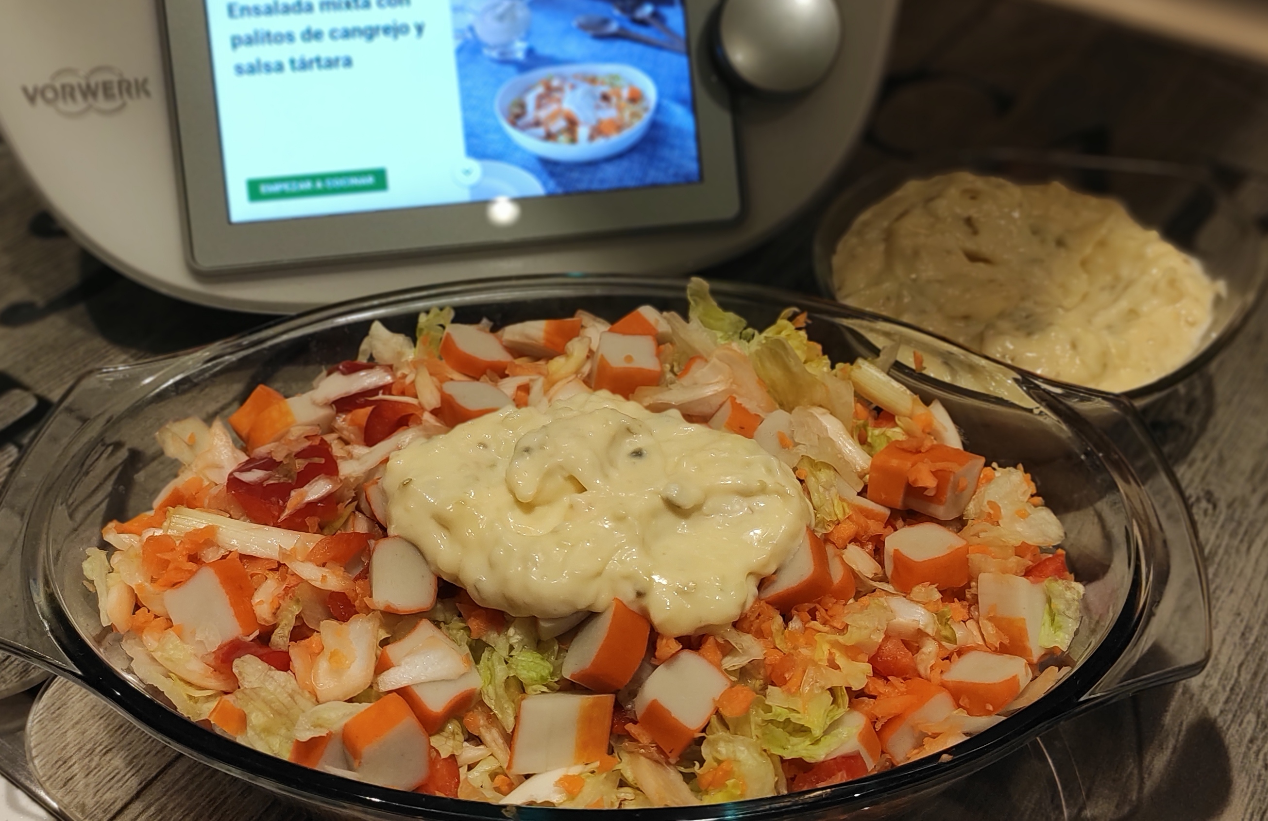 ENSALADA MIXTA CON PALITOS DE CANGREJO Y SALSA TÁRTARA