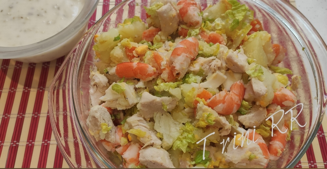 ENSALADILLA DE PATATA, POLLO Y LANGOSTINOS