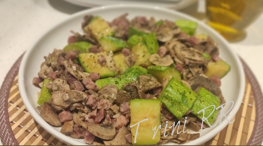 SALTEADO DE CHAMPIÑONES Y CALABACÁN CON JAMÓN